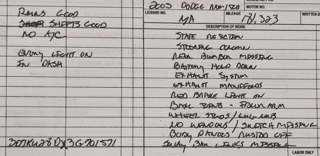 - Known Issues: The Unknown: 4x4 (Not Tested), Title shows 189k Not Actual (True Miles Unknown), No Keys (Can start and shut off with a screw driver) The Bad: Long list of repairs needed to pass inspection, more than I care to type. (See Last Photo for the list.)